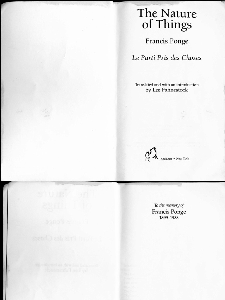 Auteur Francis Ponge Titre Et Date Le Parti Pris Des Choses 1942 L