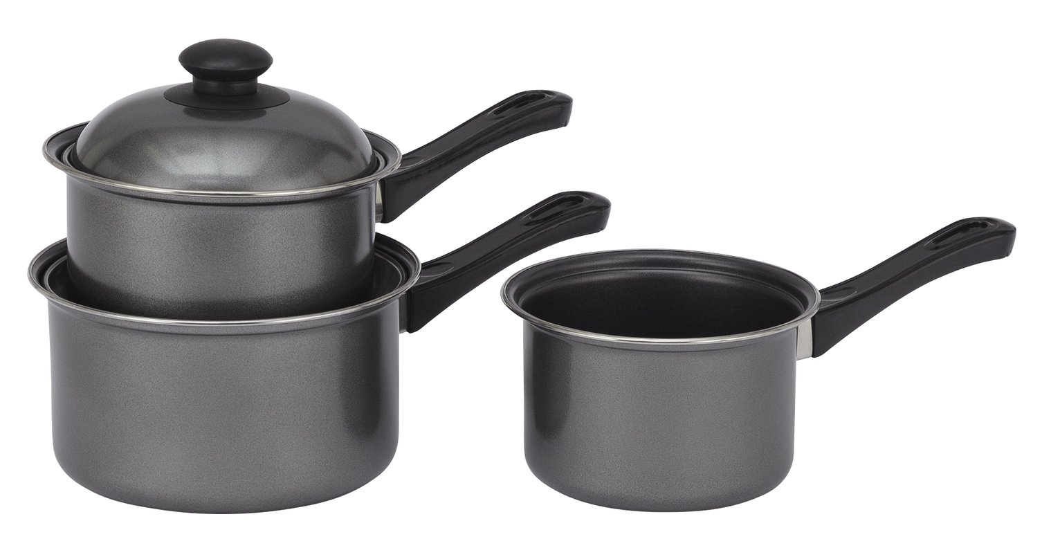 Scoville Neverstick Saucepan Set 3 Piece Pots Pans George At Asda