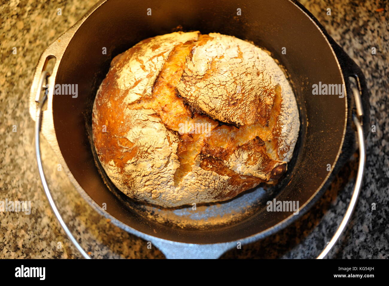 Pain Frais Artisanal De Pain Maison Cuit Au Four Dans Un Four Hollandais Lodge Dans Un Pot En Fonte Doven A Haute Temperature Photo Stock Alamy